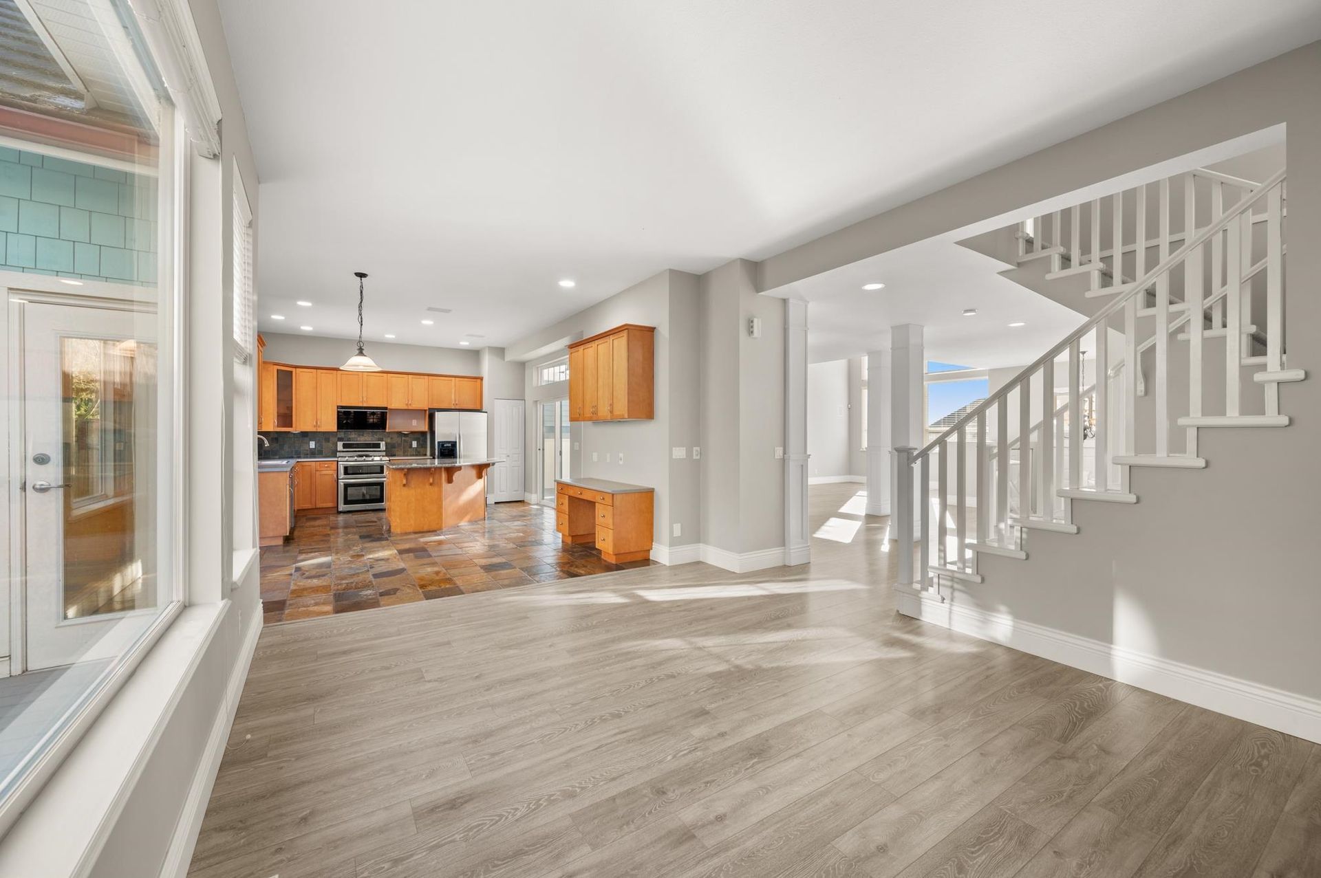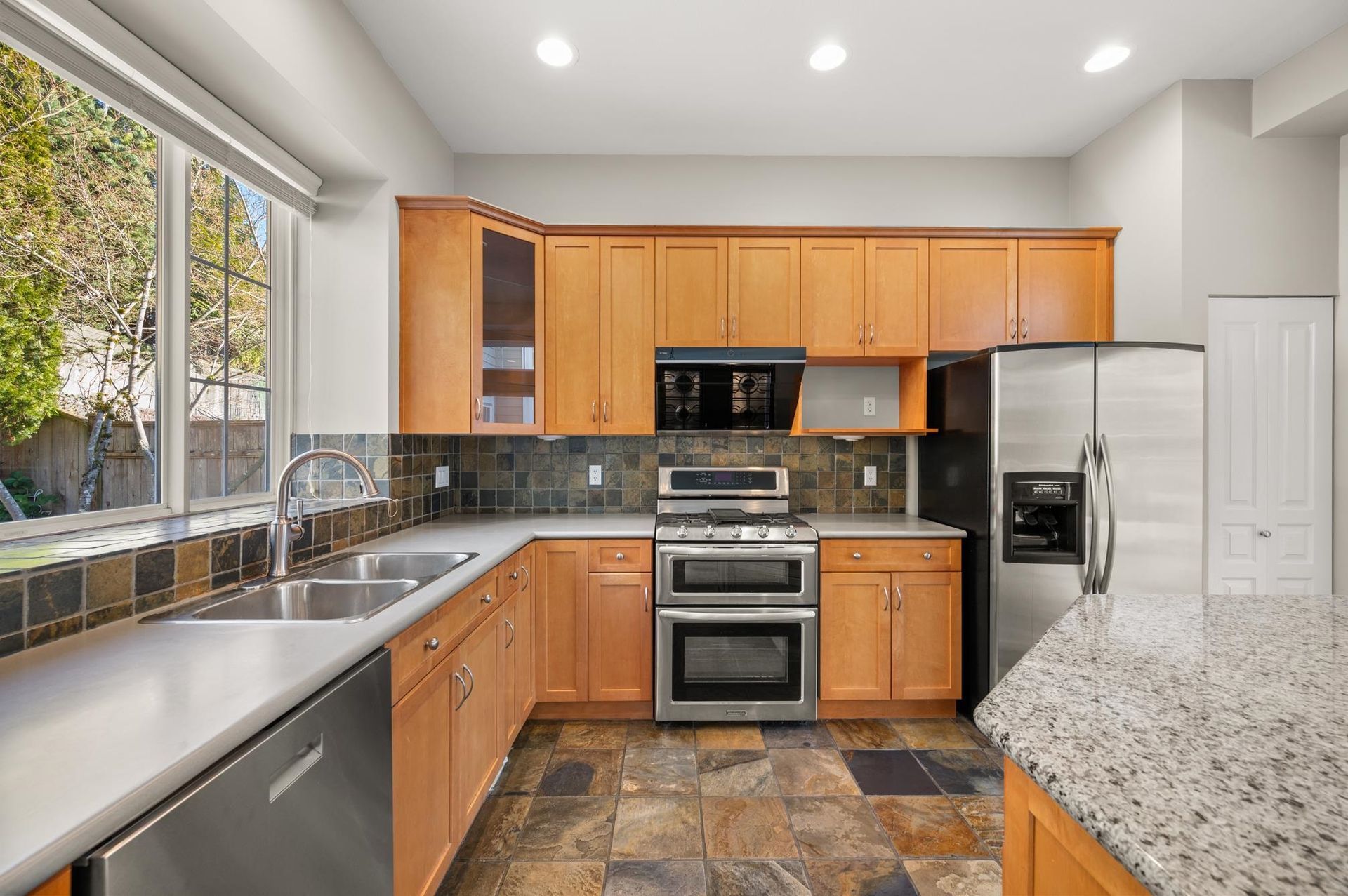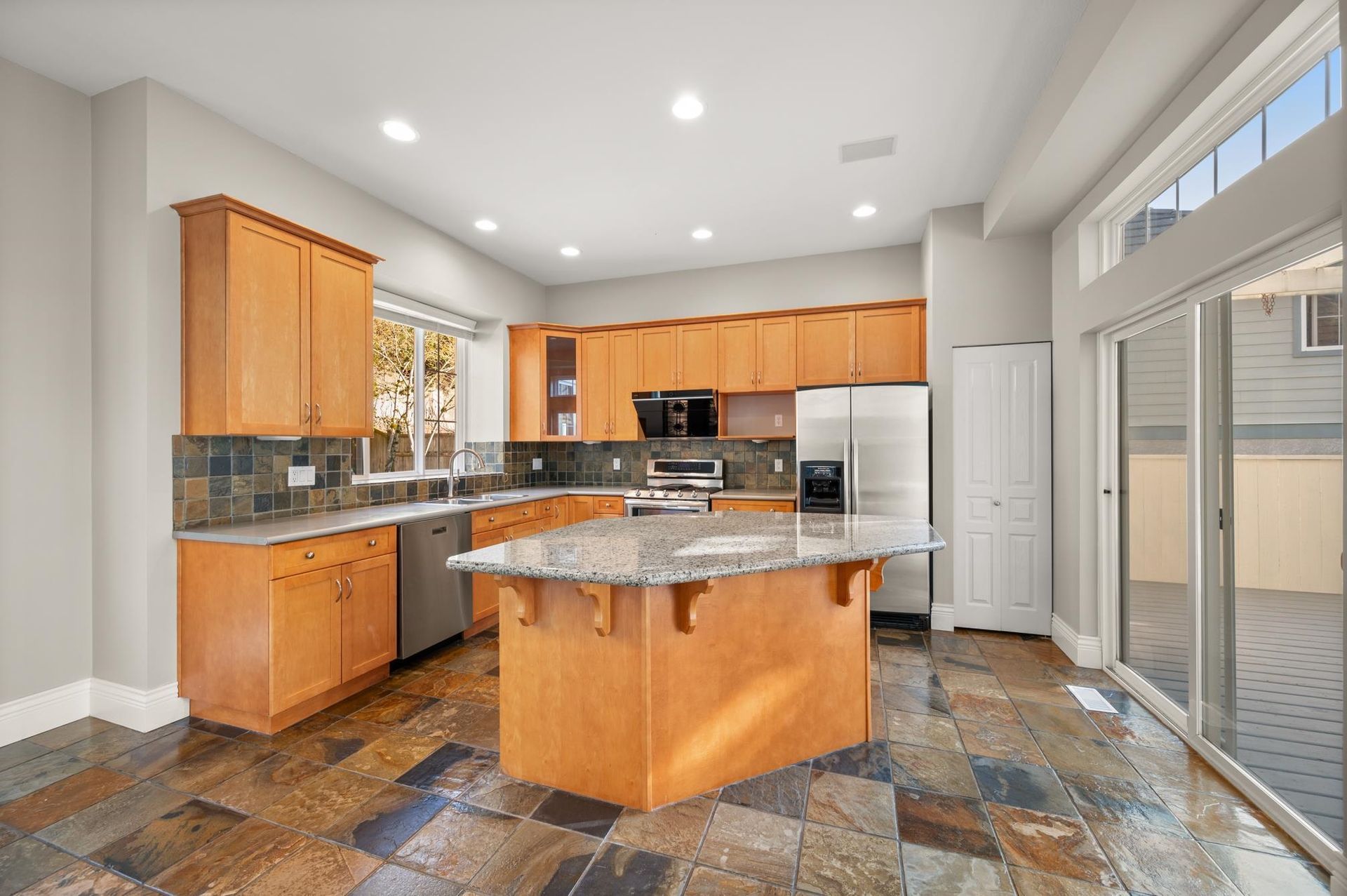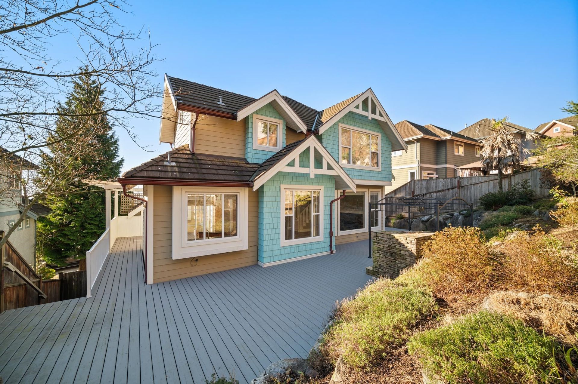 This stunning Heritage Woods family home is perfectly situated, within walking distance to all levels of schools. The open floor plan is one of the most desirable in the area with great flow and use of space. The main floor has extra tall ceilings throughout and a private side deck that extends your living space while the family room features a cozy linear gas fireplace. Upstairs are 3 large bedrooms and two bathrooms both with double sinks as well as the convenience of a separate laundry room. The primary suite has vaulted ceilings throughout, a spa-like bathroom and walk in closet. There are also panoramic southern views from the second bedroom that add to this home's appeal. Updates include modern laminate wood flooring, new carpeting, central air-conditioning and a new furnace and hot water tank. The 3-car garage, extra storage and low-maintenance yard provide exceptional convenience. The home also features a long lasting concrete tile roof, durable Hardie Plank siding, and a tranquil koi pond with waterfall to create a peaceful and relaxing backyard oasis. Easy access to the West Coast Express train which can take you to downtown Vancouver in 25 minutes. Don't miss this exceptional property!