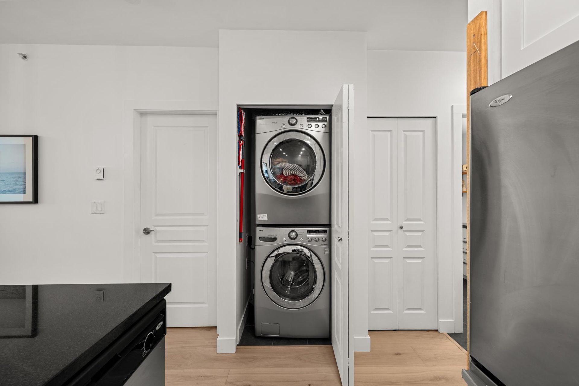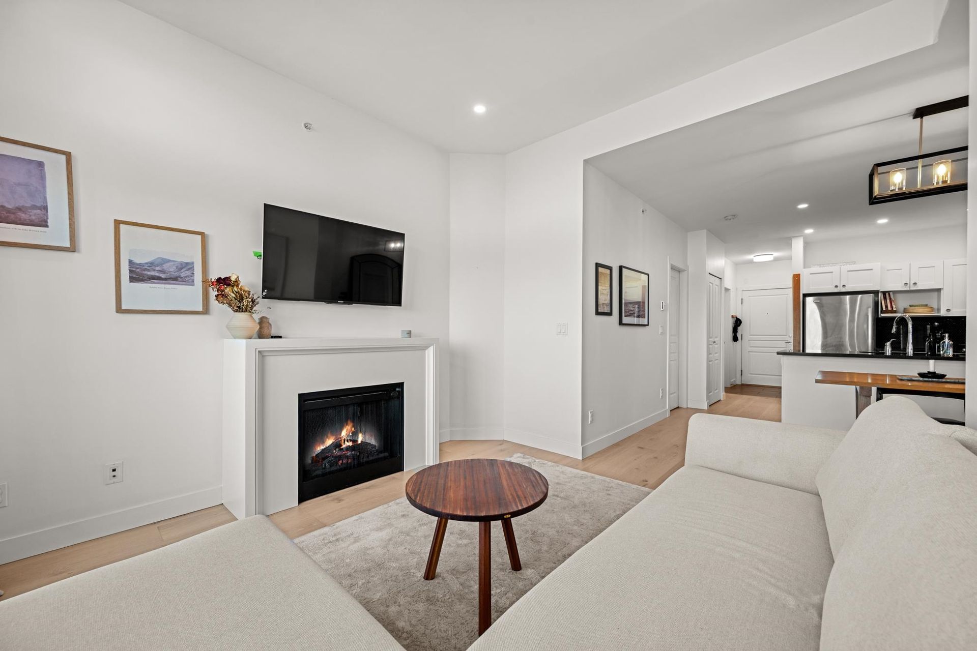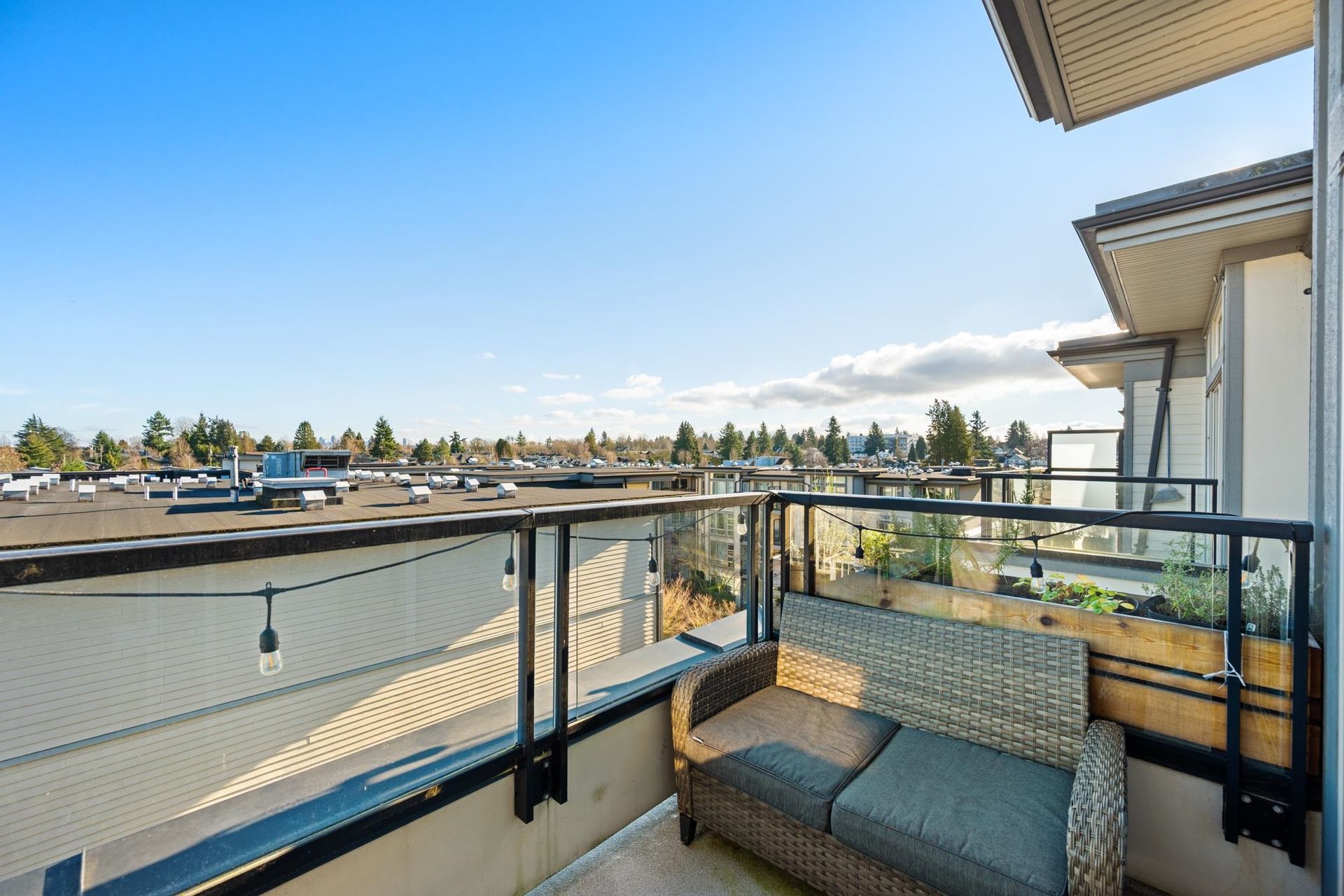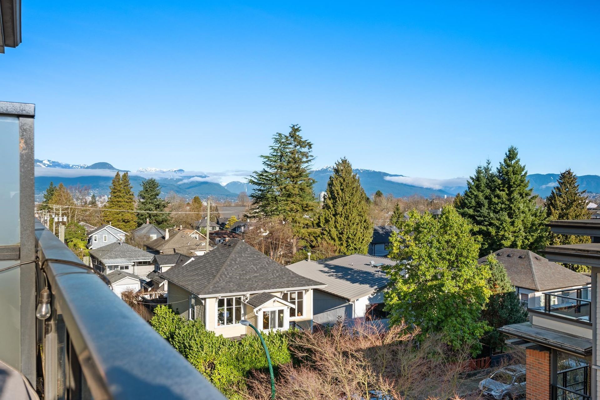 Experience the pinnacle of urban serenity in this rare top floor sanctuary at the renowned Century by Ledingham McAllister. Perfectly situated on the quiet side of the building with no one above you, this sprawling 1 bed + den home boasts soaring 10' ceilings, peaking at an impressive 11' in the living area with extra windows for maximum light. Many bespoke upgrades sets this home apart, including 9" waterproof oak UltraWood flooring, custom wainscoting in the den, and designer LED lighting throughout. The open-concept kitchen features quartz counters and SS appliances, flowing into a bright living space and a private balcony with unobstructed mountain views. Located in the vibrant Fraserhood, steps from top-tier dining, transit, and essentials. Pet friendly with secured parking & storage.